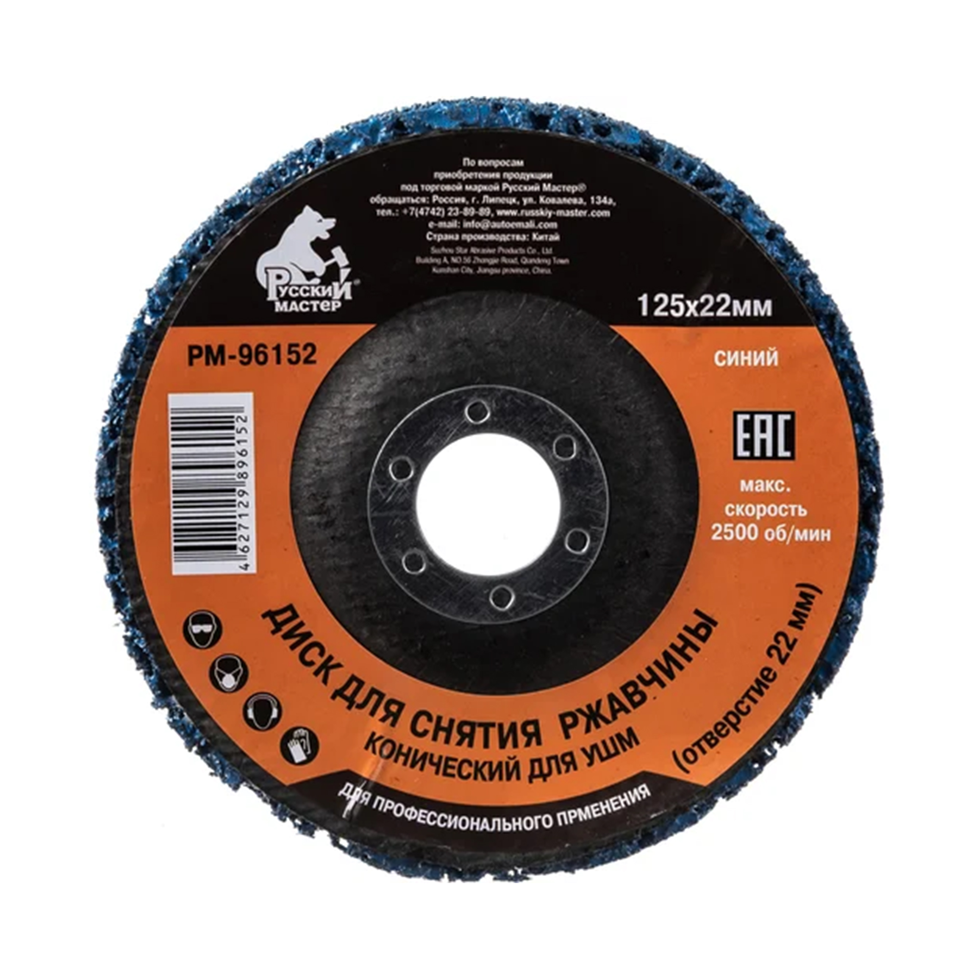 Диск для снятия ржавчины конический содержит в себе объёмные синтетические волокна с напылением абразива. Применяется для эффективного снятия антигравийного покрытия с порогов автомобиля, старых поврежденных слоев лака, грунтовки, шпатлевки, а также ржавчины и окалины. Открытая структура абразива предотвращает забивание и значительно продлевает срок службы абразивного круга.