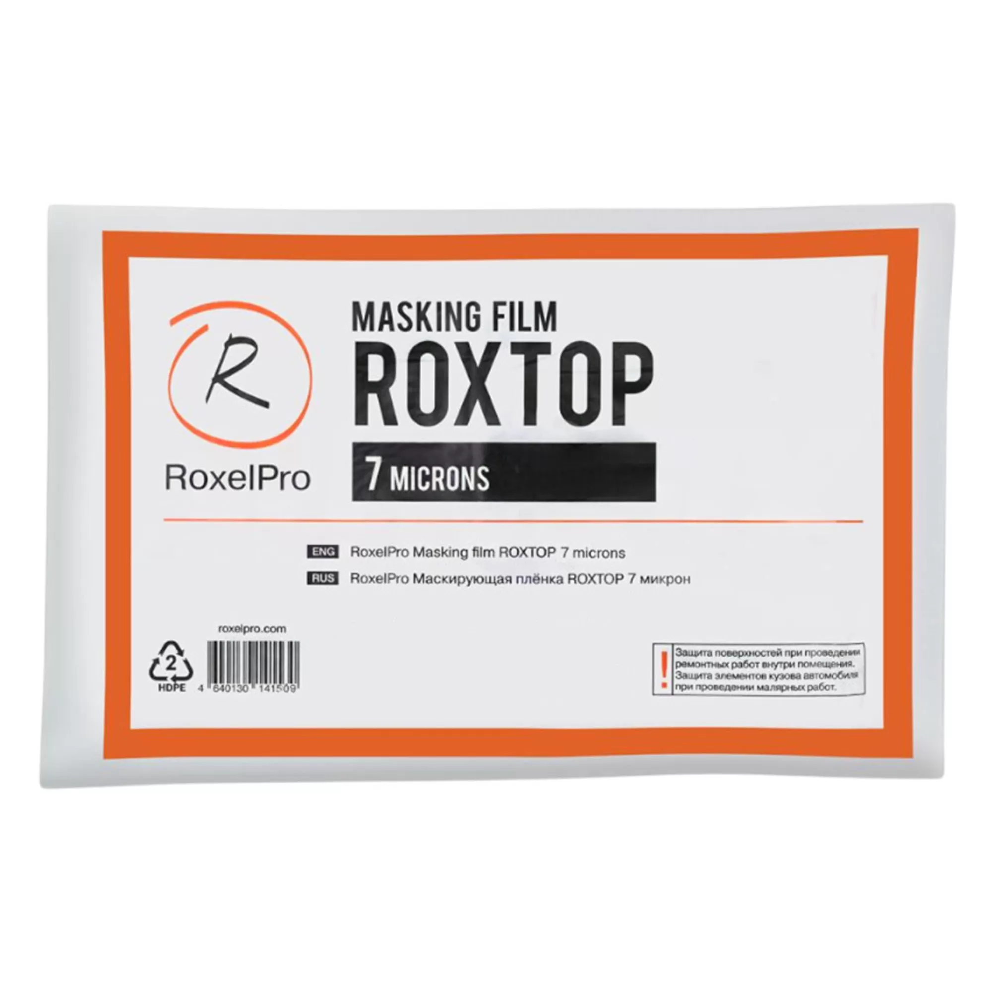 Прозрачная маскирующая плёнка с электростатическим эффектом «прилипания». Разработана специально для авторемонта и обладает способностью «удерживать» перепыл. Это выгодно отличает её от конкурентных аналогов, которые в основном представляют собой пленку, предназначенную для общестроительных окрасочных работ и не гарантируют надлежащую защиту деталей и автомобиля. Плотность - 7 микрон.